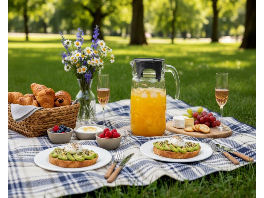 - Skleněný džbán vhodný do domácnosti na přípravu nápojů studených i teplých.