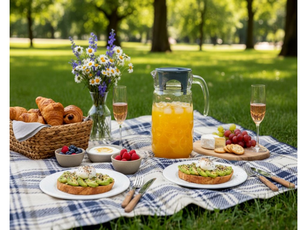 - Skleněný džbán vhodný do domácnosti na přípravu nápojů studených i teplých.