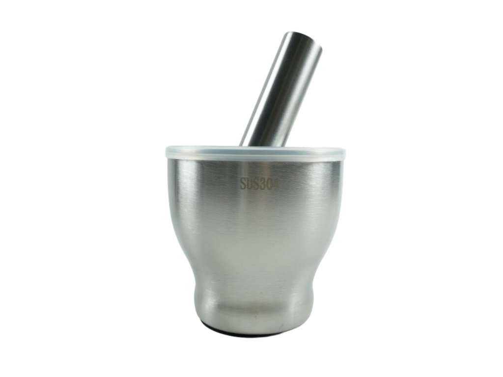 - Tento robustní a trvanlivý hmoždíř je vyroben z vysoce kvalitní nerezové oceli a je odolný vůči korozi a snadno se čistí.