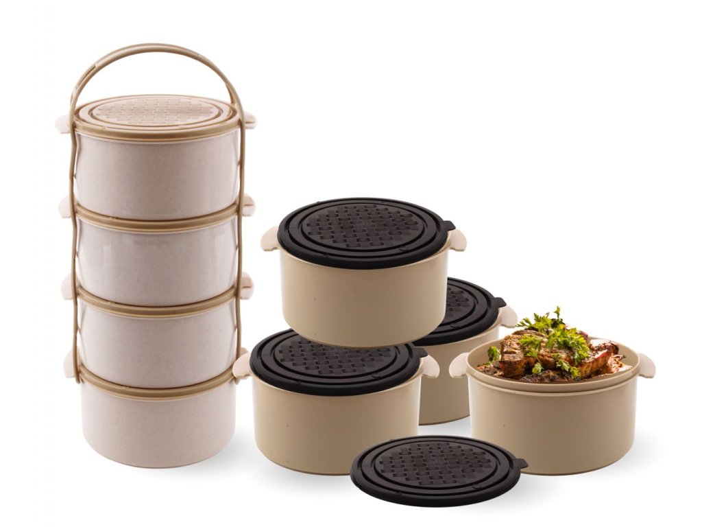 - Čtyři patra umožňují oddělit různé druhy jídel, což je ideální pro ty, kteří si chtějí vychutnat kompletní oběd nebo večeři bez míchání chutí. Každé patro má svůj vlastní uzávěr, který zajišťuje, že jídlo zůstane na svém místě a neunikne žádná tekutina.