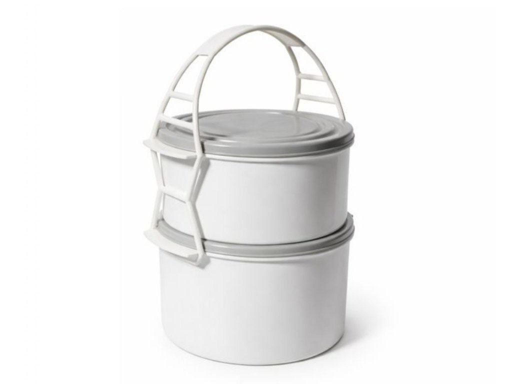 - Objem jídlonosiče je 1x dóza o objemu 1,3l a 1x dóza o objemu 1,7l.