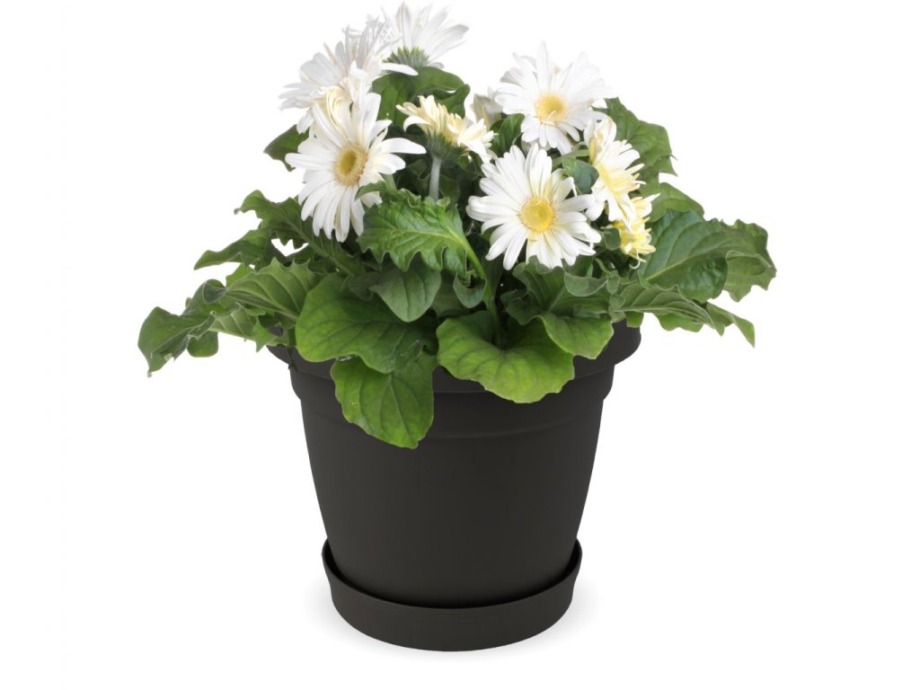 - Na dně květináče jsou odtokové otvory, které zabraňují přemokření kořenového obalu.