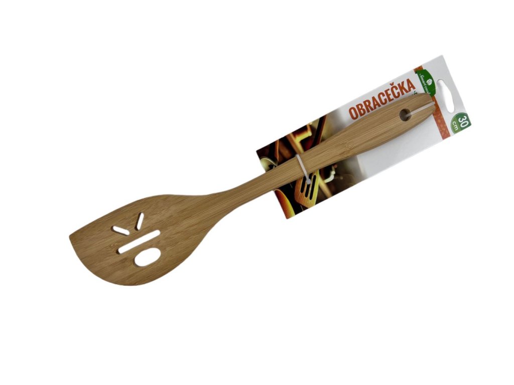 - Dřevěná obracečka z bambusového dřeva je nepostradatelnou součástí kuchyně.