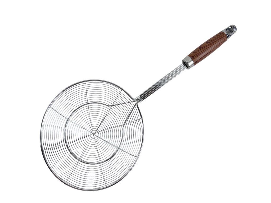 - Spirálová síťovina zajišťuje rychlé odkapávání, zatímco dlouhá rukojeť zaručuje bezpečné používání.