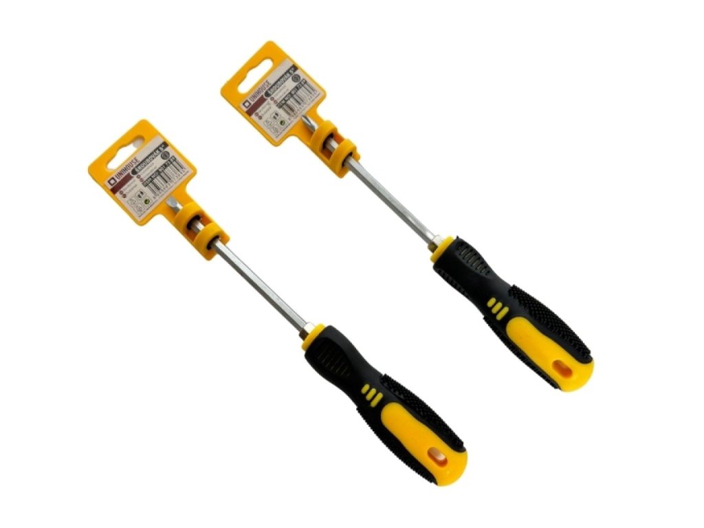 Šroubovák 2v1, na jednom konci je plochý a na druhém konci je křížový šroubovák.