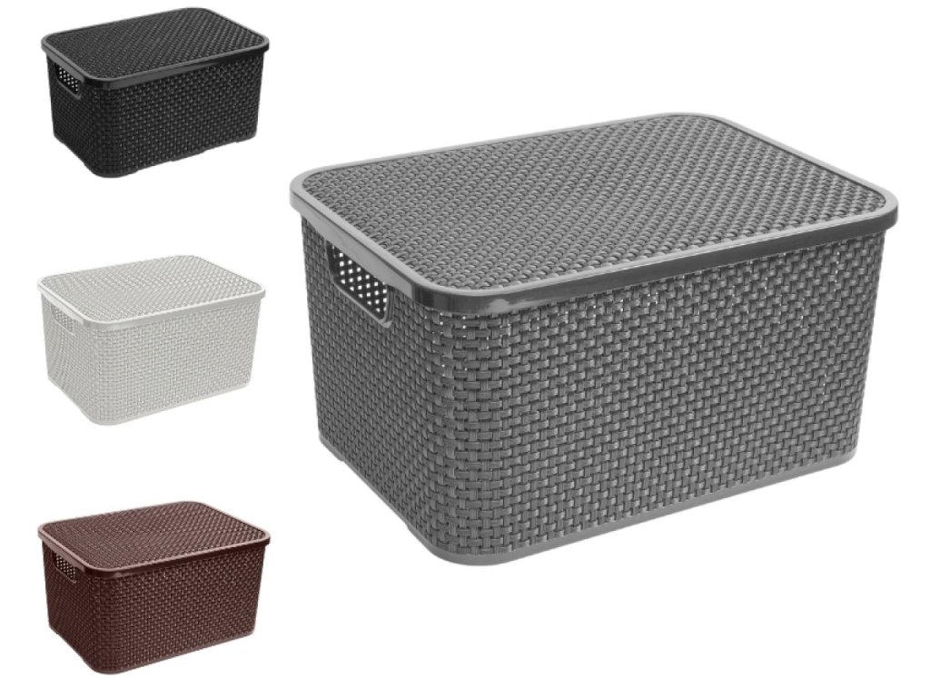 - Plastový box s víkem a dvěma úchyty pro snadnou manipulaci.